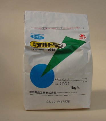 発生前(新葉の生育前・桜の花が終った時点)オルトラン粒状を撒く5号鉢に1g程度。