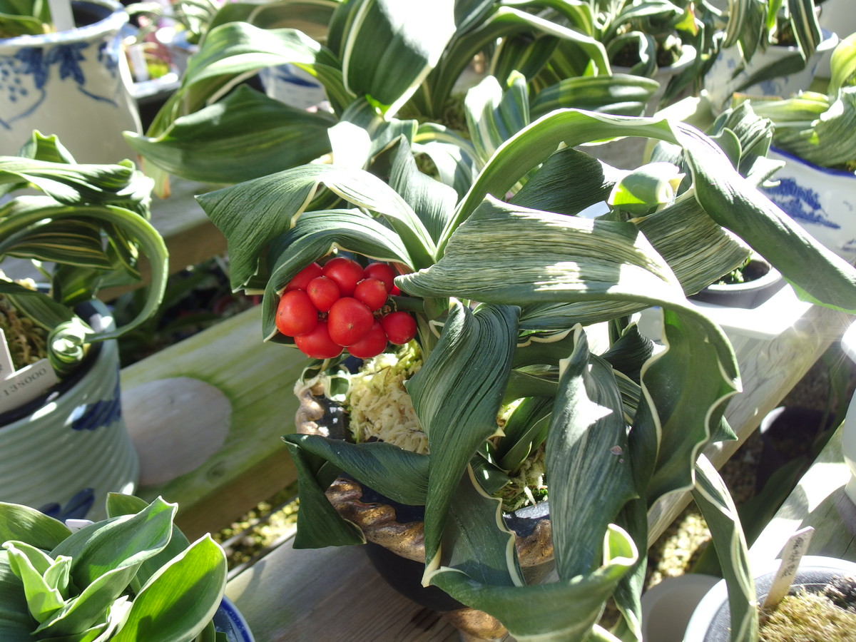 投稿日: 2022年1月3日2022年1月7日豊明園2022年1月1日 寅年 豊明園第一温室 2022年1月1日 寅年 1月の潅水は温室内では7日を目安にオモト鉢の状態を見ながら行います。外で管理しているオモトは晴天が続くと上渇きするので晴天の日を見て換水します。 豊明園第二温室 2022年1月1日 月光丸の実