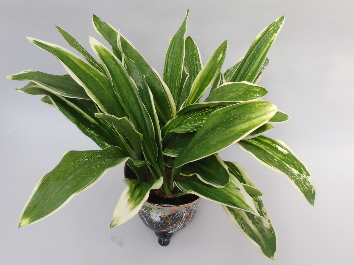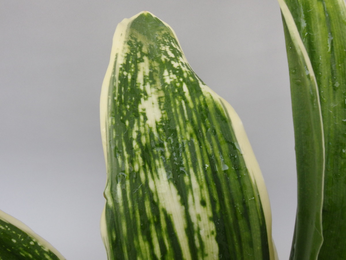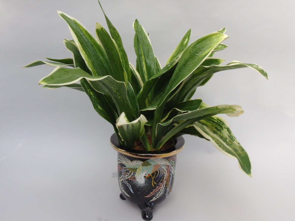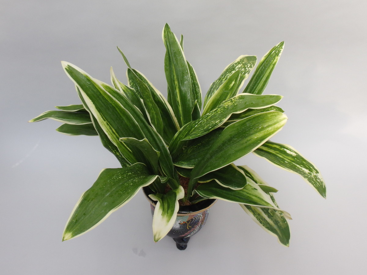 大葉の中でも広い葉で、大きくなる。立葉に覆輪をかけ、葉も少しだが波打つ。日を良く採ることで、真っ白の白虎が現れ、大きく表れる大虎、星を散りばめたように現れる星虎は古くからの万年青の美しさを感じさせる。