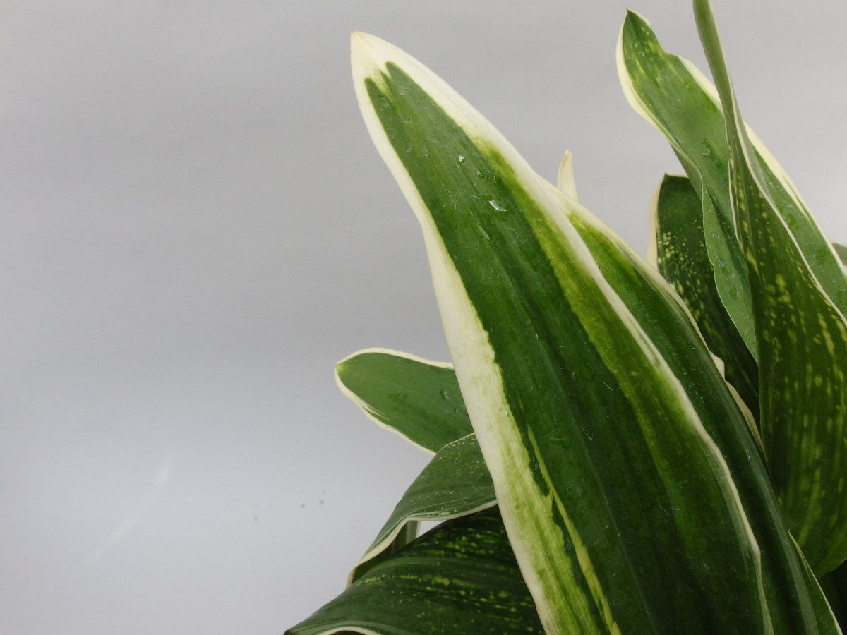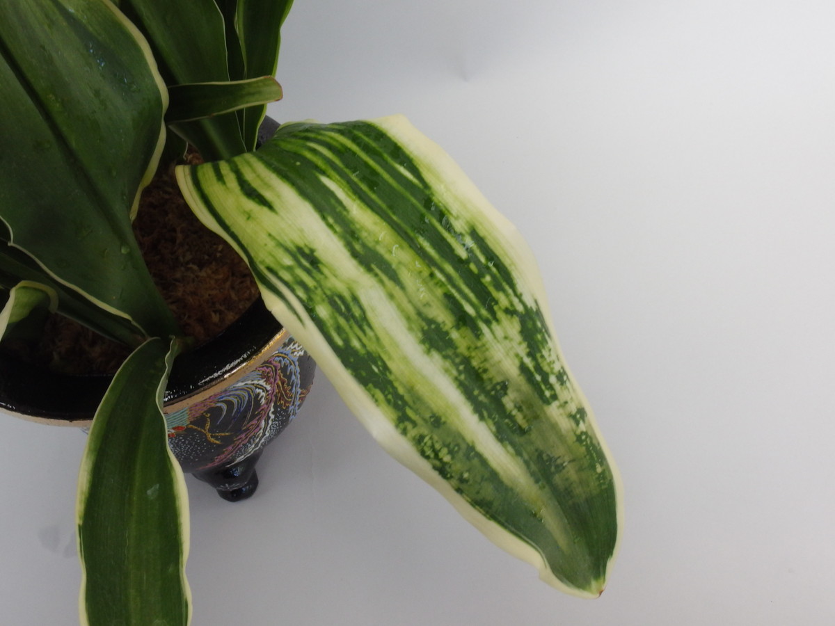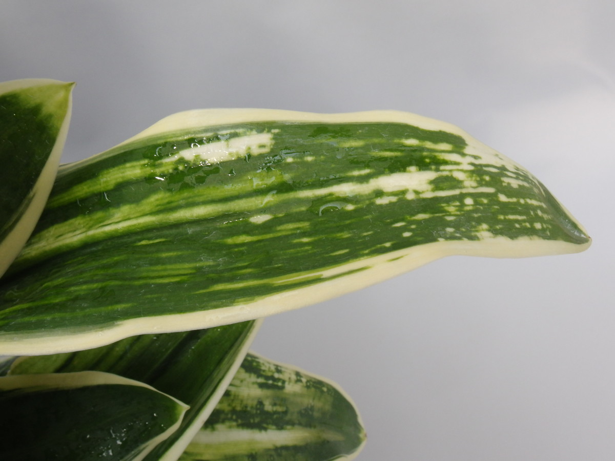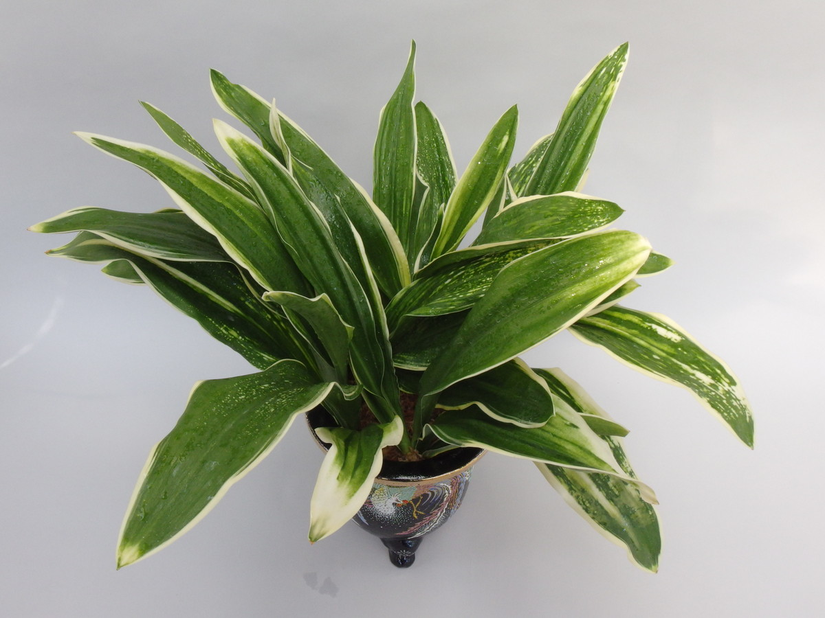 大葉の中でも広い葉で、大きくなる。立葉に覆輪をかけ、葉も少しだが波打つ。日を良く採ることで、真っ白の白虎が現れ、大きく表れる大虎、星を散りばめたように現れる星虎は古くからの万年青の美しさを感じさせる。