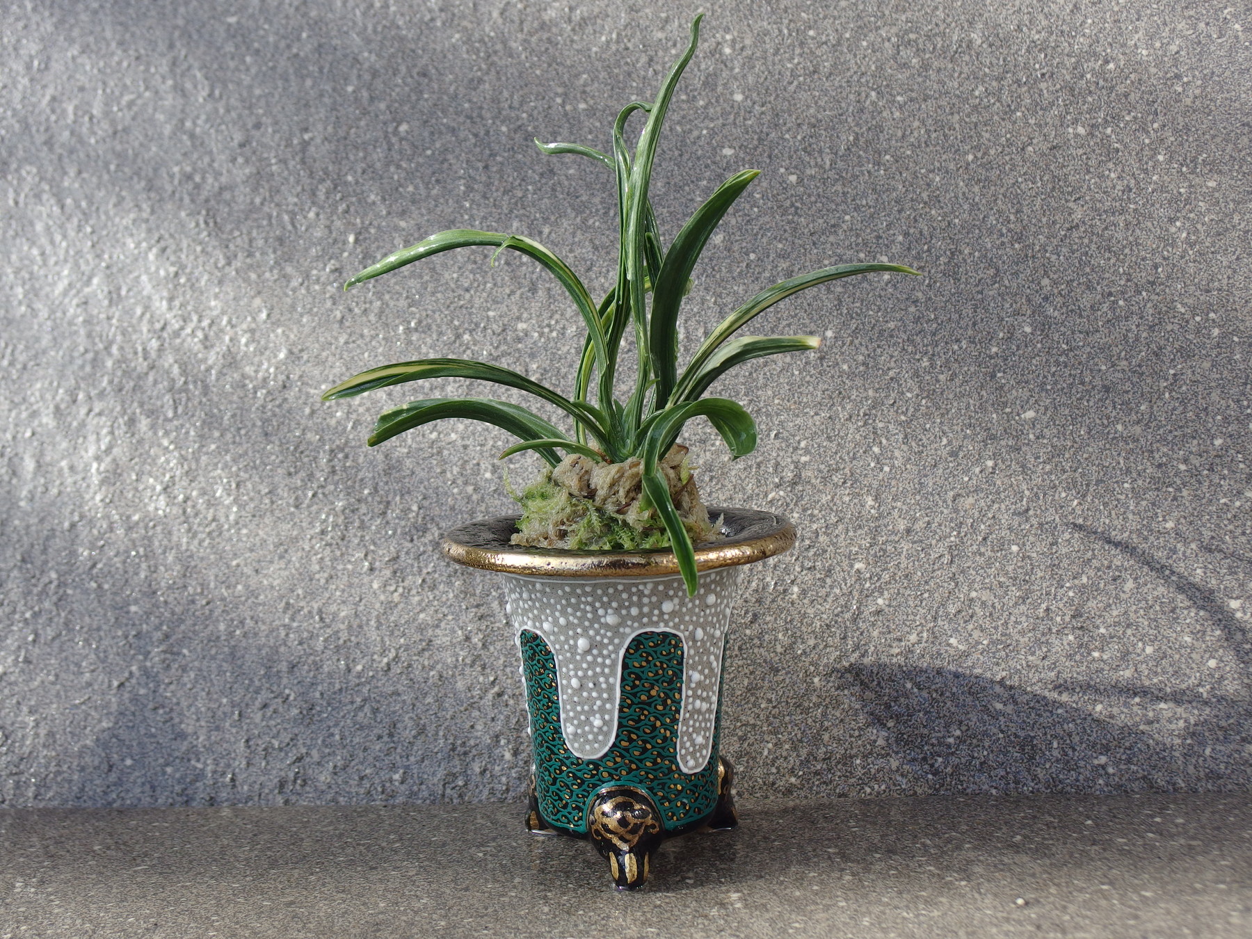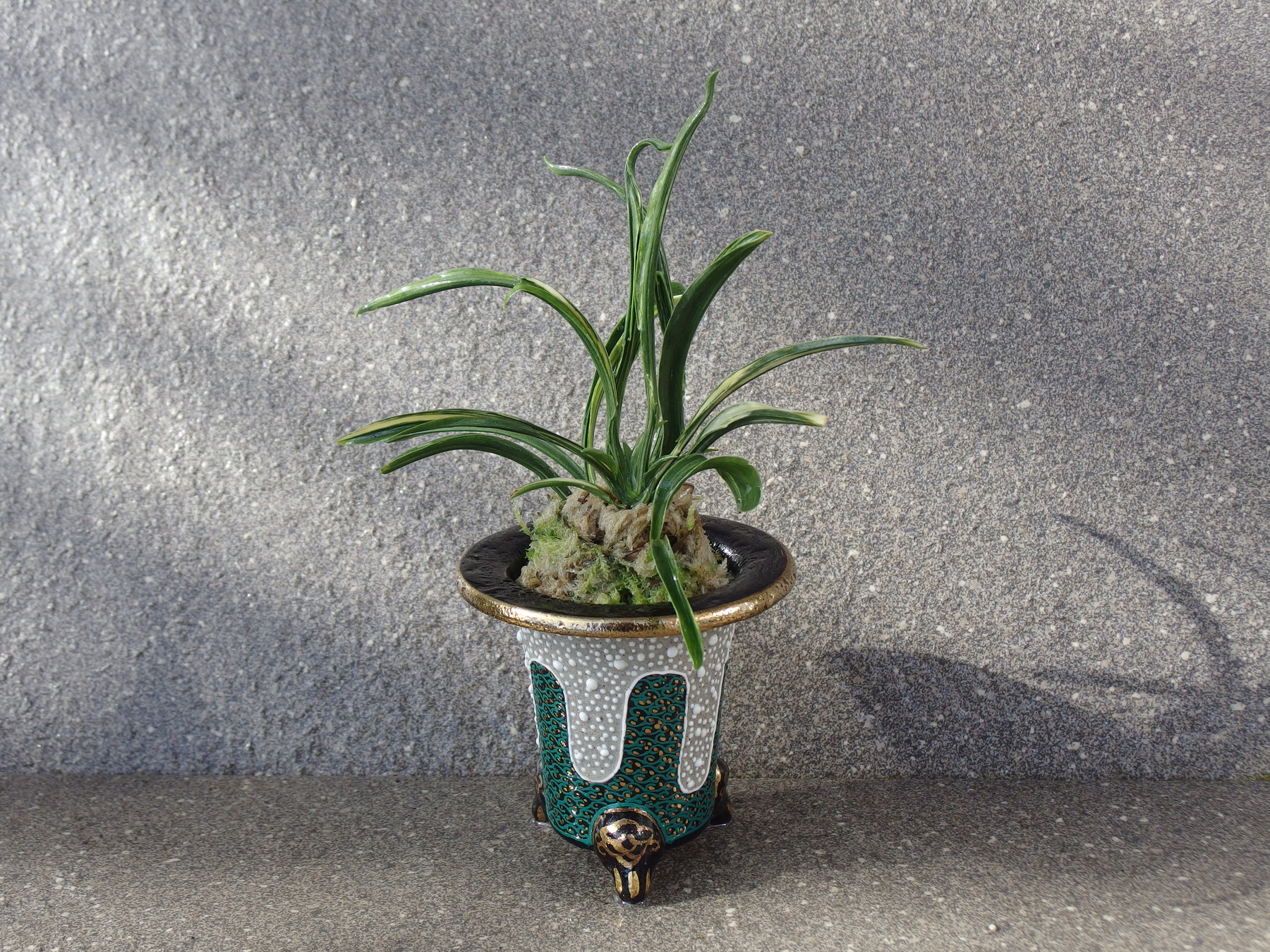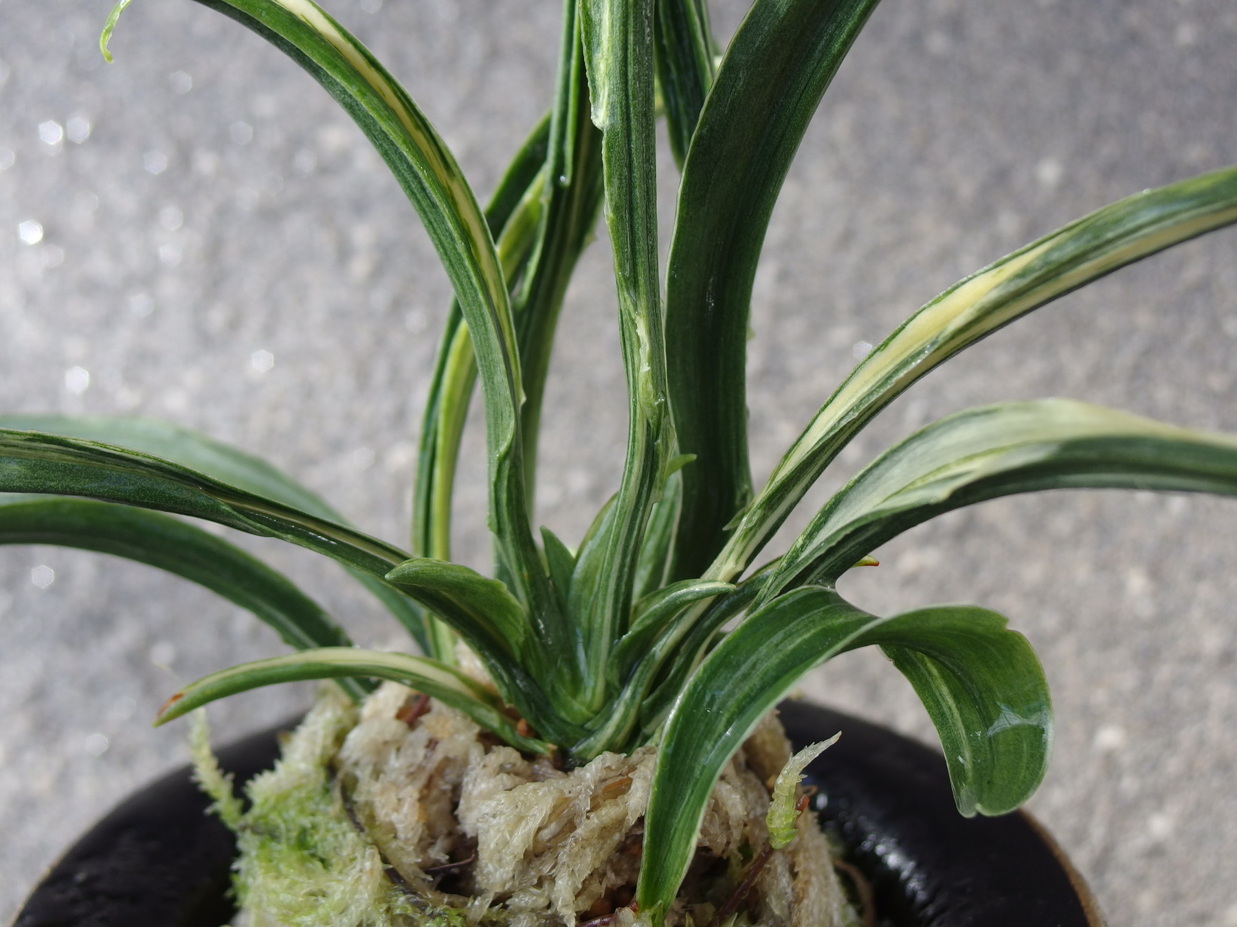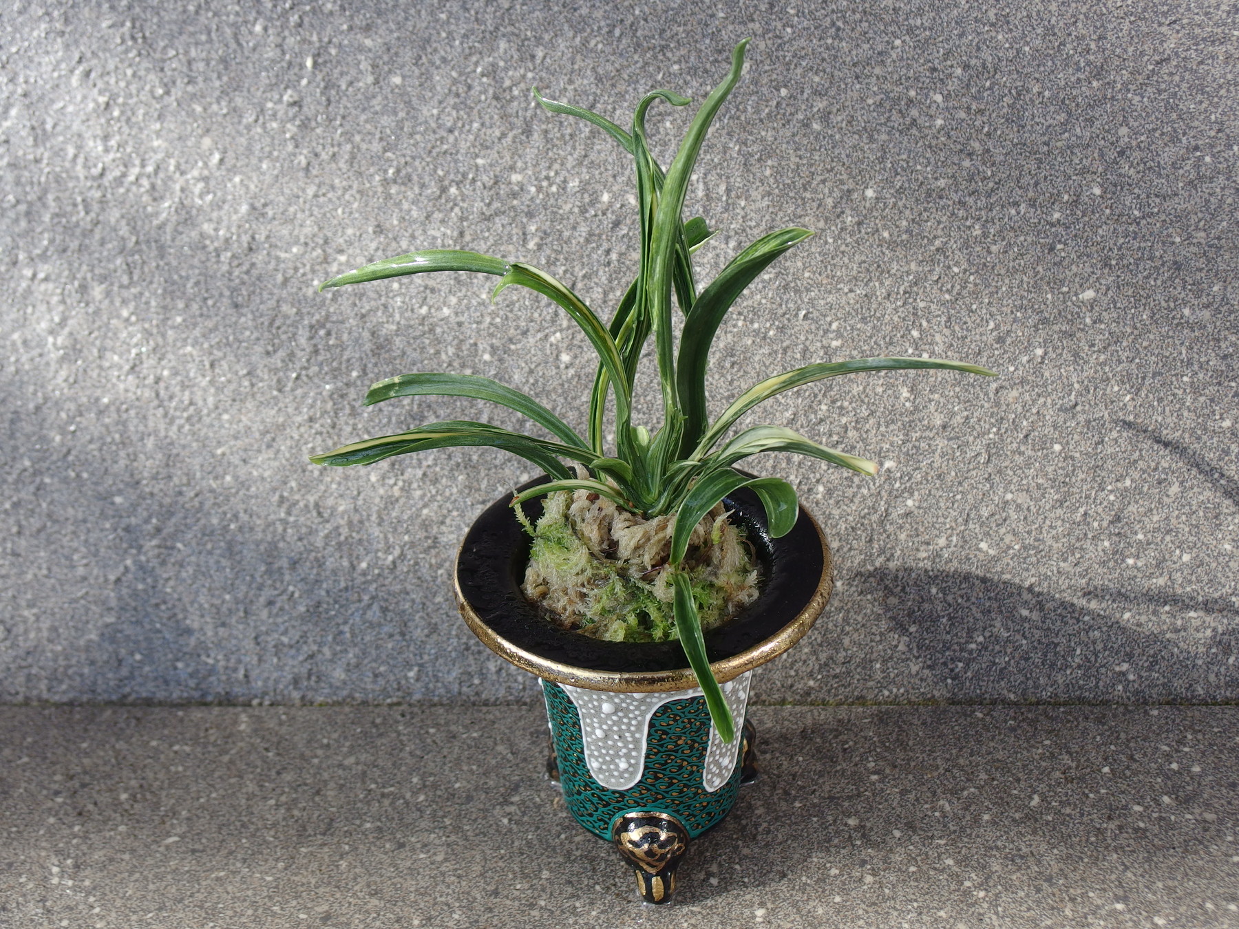 還城楽 (げんじょうらく)に似た姿を現す、現代の珍品。笑福獅子が親なので、手前の子供に見えるように、最初は獅子の葉をしています。生長するにつれ、次第に背が堅く、立ってきて裏雅糸竜、玉龍、逆鉾芸のような葉を重ねたような変化葉を示します。かぎ爪のような芸、ミツマタのような葉など、珍品好きにはたまらない木。子上げは普通なので、芋吹きより子上げが主か。まだ数少なく、性質が分かっていない木。