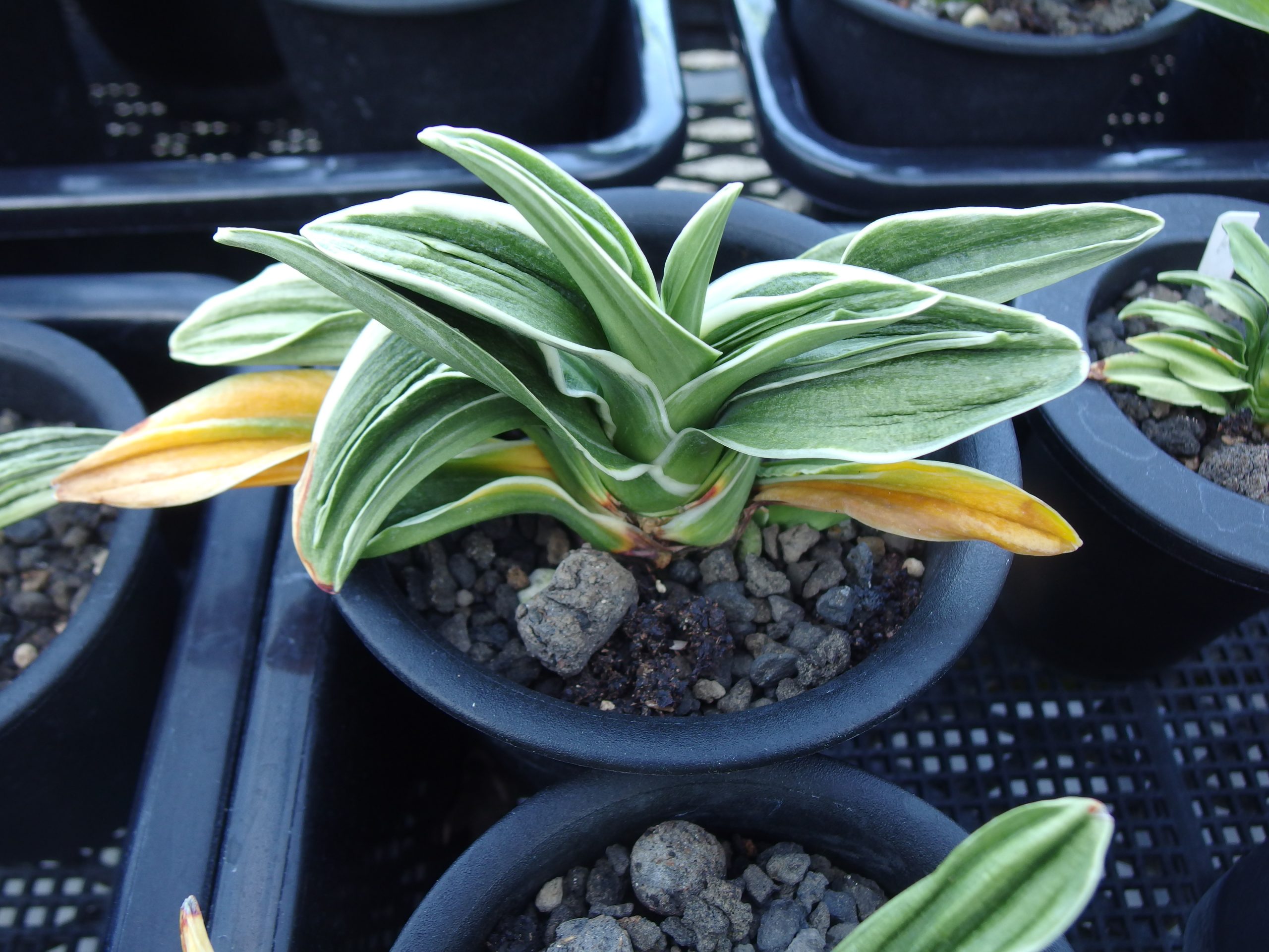 紺地が強い葉は地肉があり力強く丈夫な品種。繁殖はおもに芋吹き
