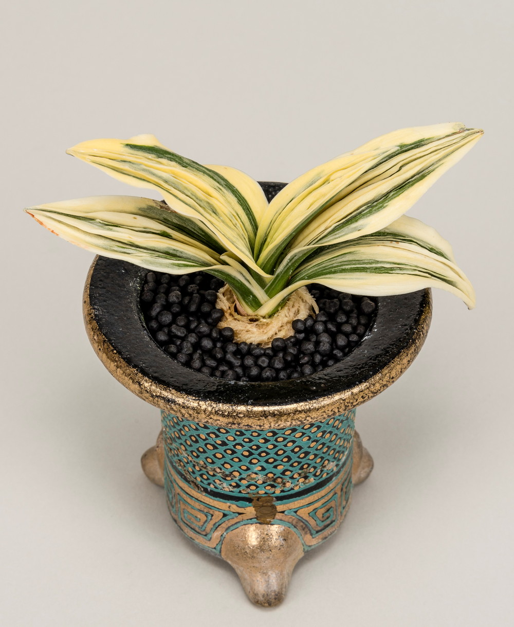広い葉幅に激しい雅糸竜が魅力。性質は丈夫だが芸が激しいため葉数の少ない品種