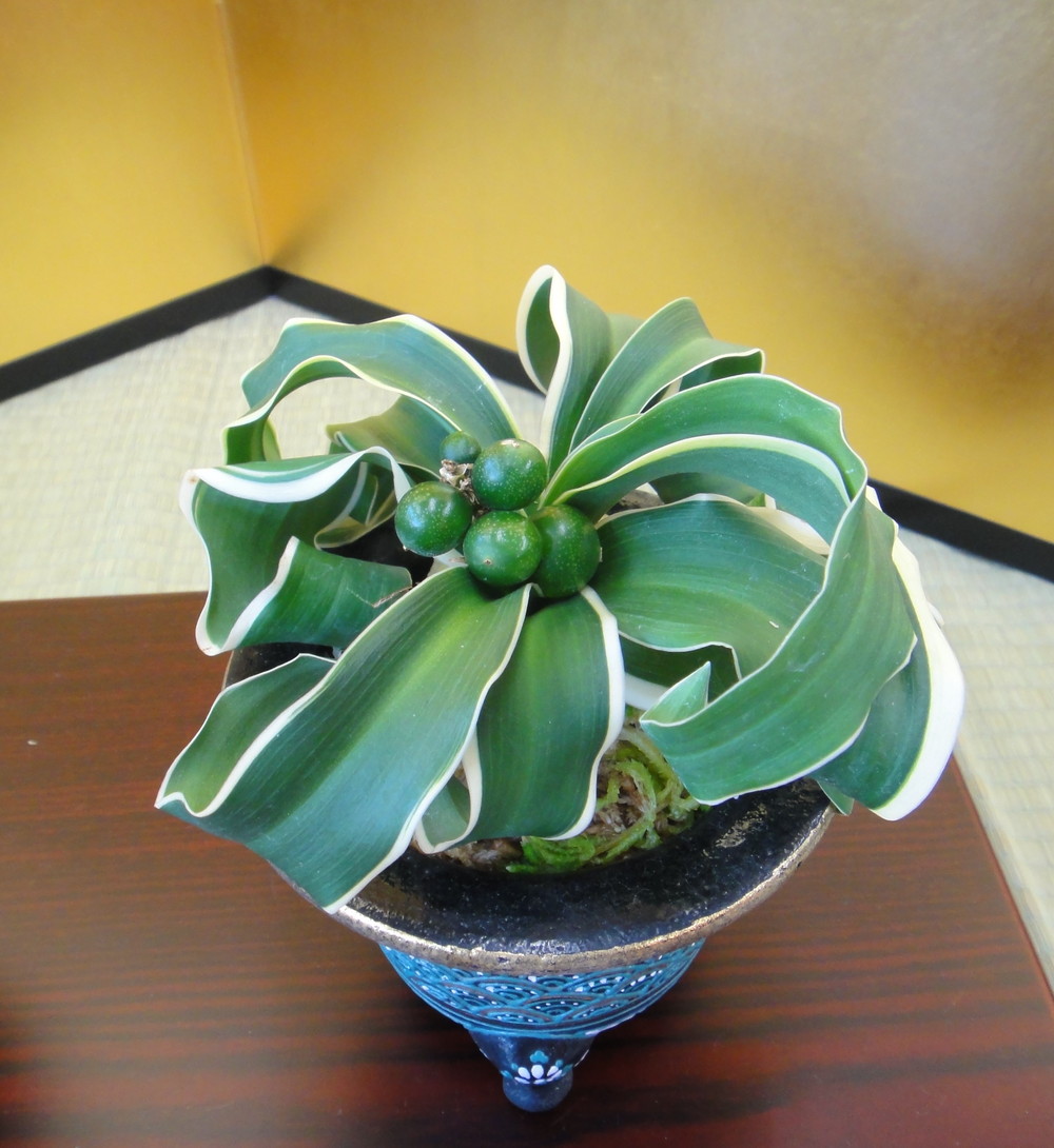 青い実から赤い実に変わるところで、江戸時代の万年青フリークもこんな風に実生をして新しい獅子をつくっていったのかな、とロマンがある