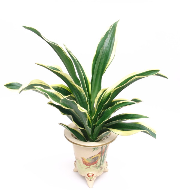 やわらかい緑色の葉に白い覆輪を見せる、丈夫で作り易い品種。雄大で、地植えも可、引越し、お祝いおもとにも最適。葉長 10cm~35cm葉の美しさと豪快さ、雄大さを楽しむ大葉系大葉の基本のキだが、近年は少ない。丈夫さがあり、鉢植えだけでなく、地植えで楽しむことも多い。鹿児島、宮崎や熊本では大葉の本場だけあって、武家屋敷の玄関に、鬼門の方向に、石や植木の根〆しめとしてこの「太陽殿」が植えられる。