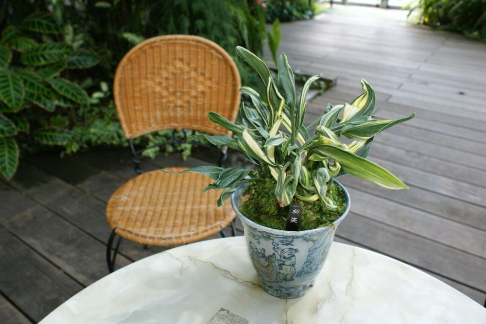 逆鉾の芸の面白いものです。逆鉾自体、葉が2枚くっついたようにでたり、筒葉や名前の通り、鉾がでたような葉がでますが、こちらも変わった葉が縦横無尽におもとじゃないようなおもと。歴史を見てみると、実はこういった葉の裏側まで芸をするおもとや、変ったおもとが流行したときがあるそうです。