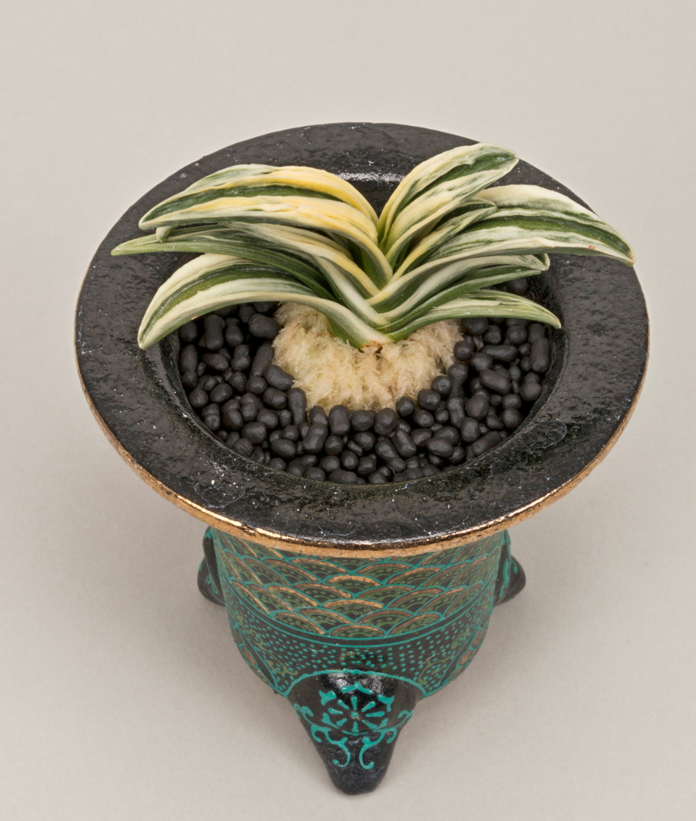 松籟(しょうらい) 5年生 鉢 3.3号 濃緑色の肉厚葉に熨斗芸、雅糸竜を見せる。性質は強健、丈夫で作り易い品種。