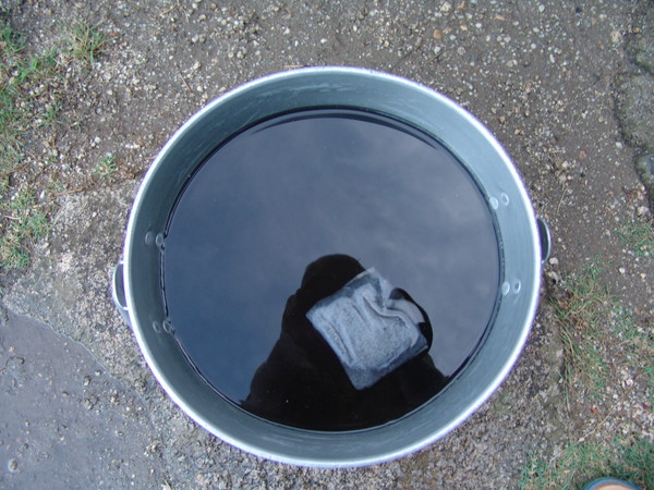 ワラ灰のパック(袋)を入れて時間がたったところ