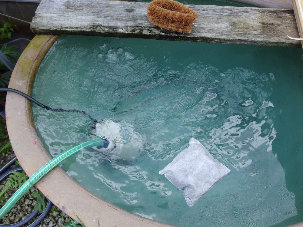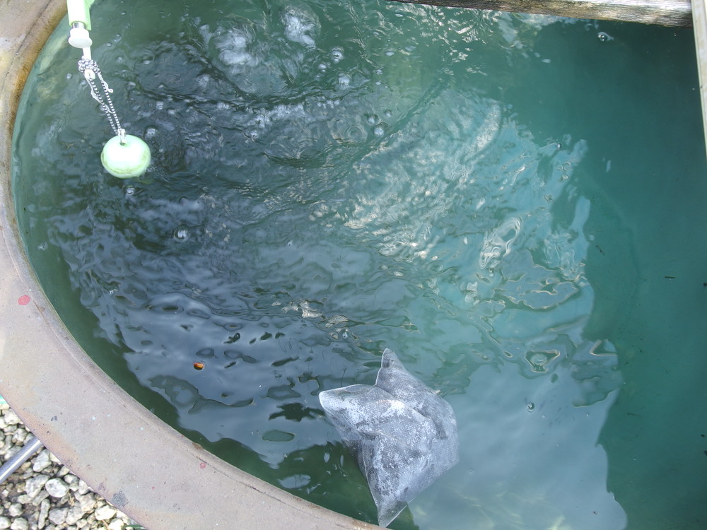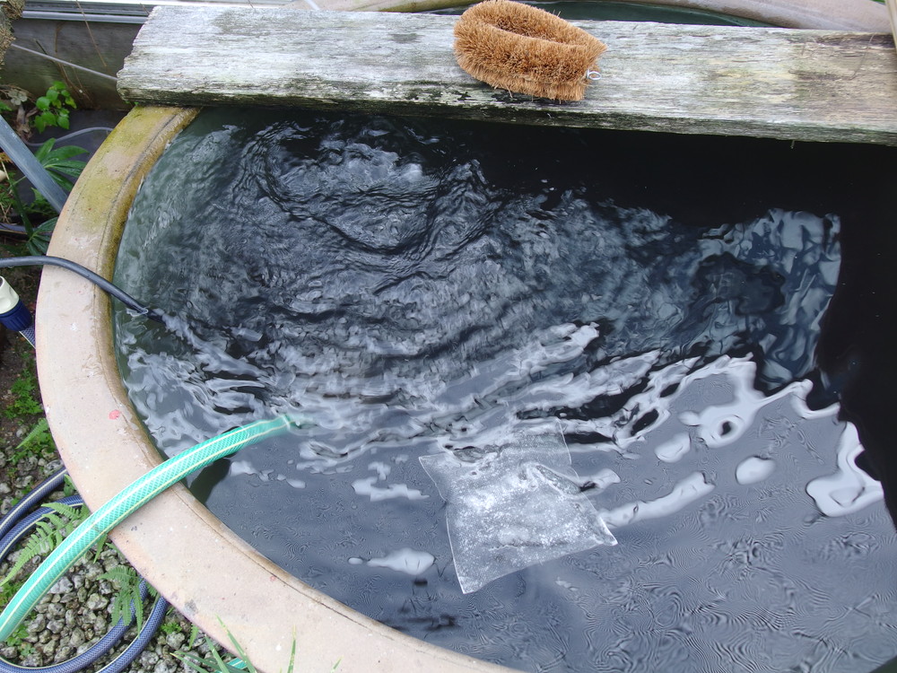 大きなパックを200L前後、風呂桶ほど水が入るカメにいれます。