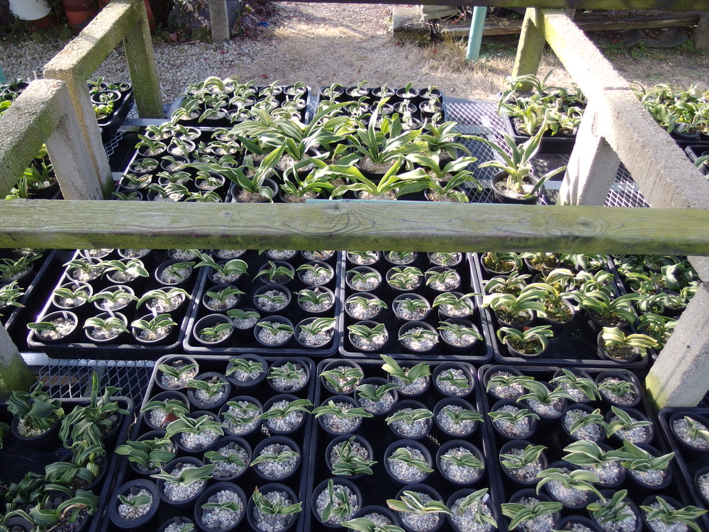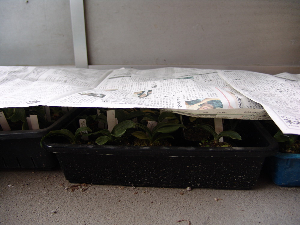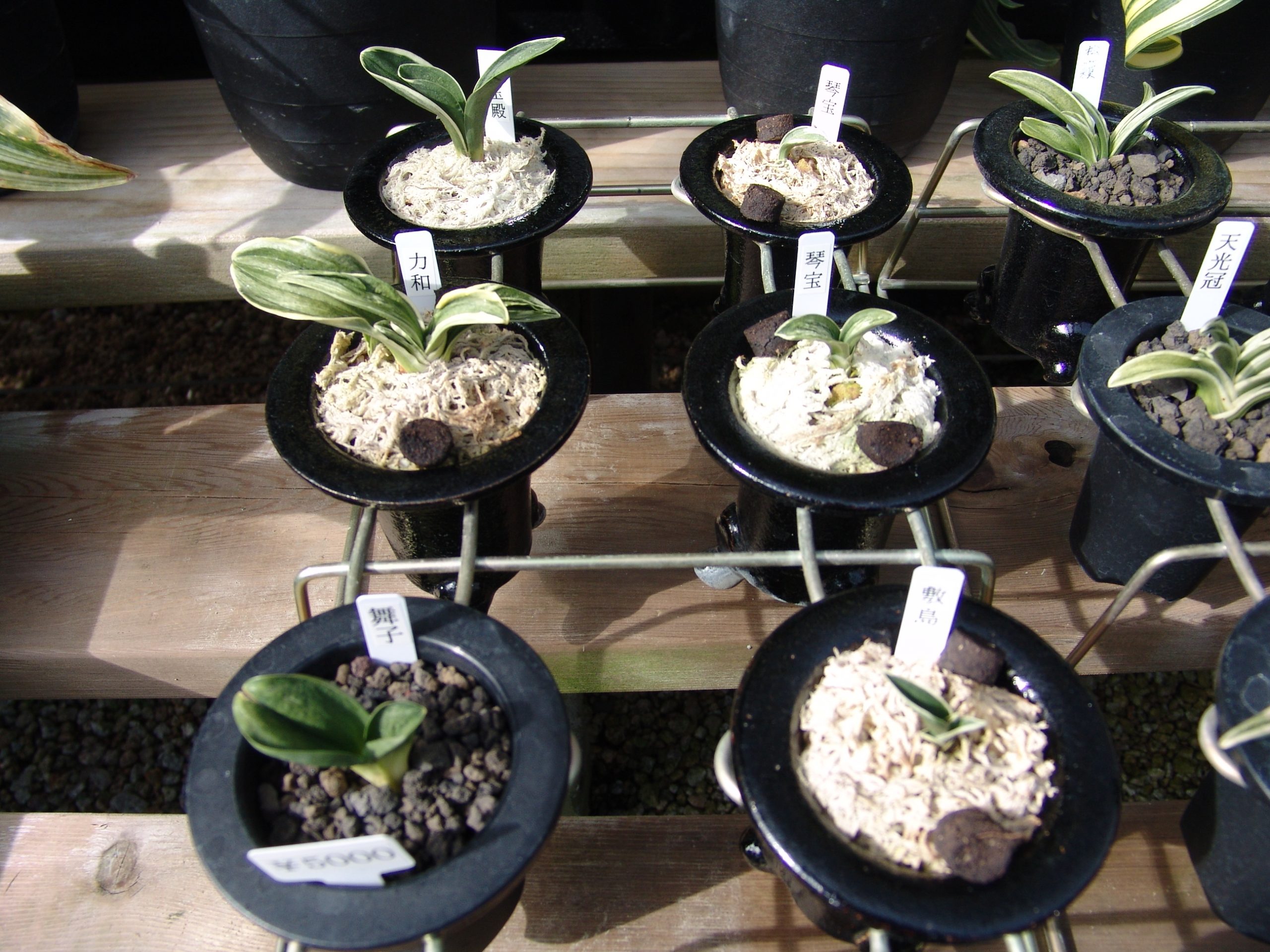 直射の場合は午前中の採光をします、1日中の場合は不織布や寒冷紗ごしの採光です。葉の薄い薄葉系統は直射をさけ不織布・寒冷紗などの下゛て管理します。