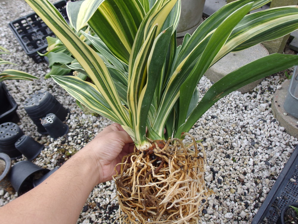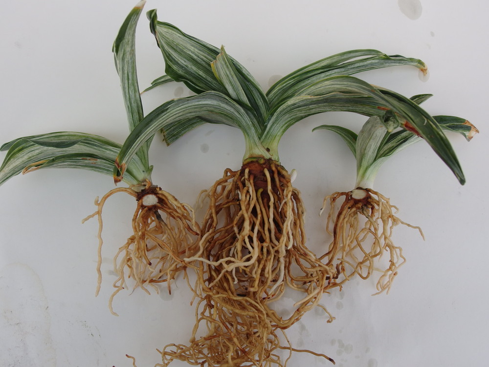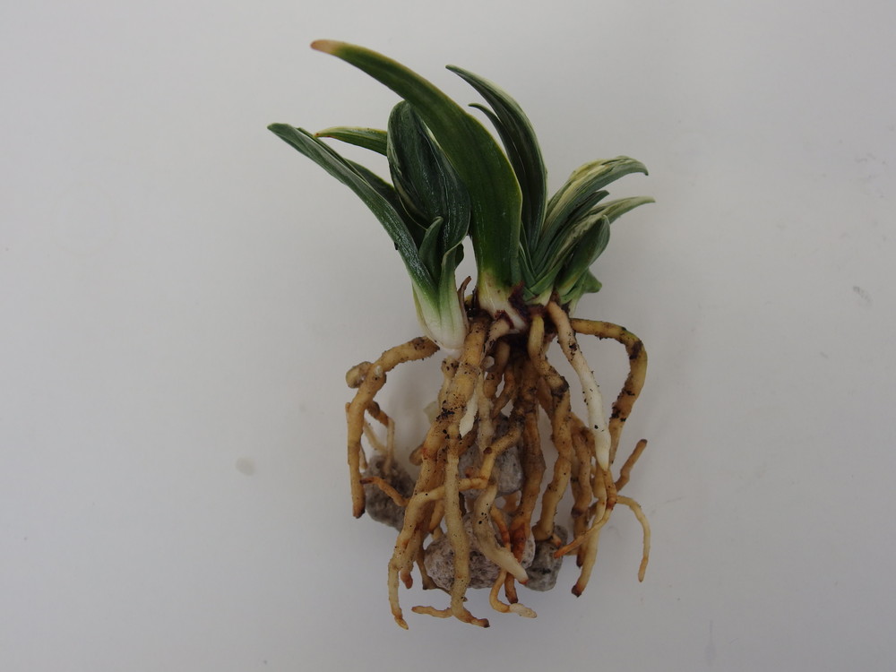 この時期、夜間、氷点下以下になり、万年青を凍らせることがあります。雪が降った時もです。やってはいけないのは、早く解凍しようと温かいお湯をかけたり、日に強く当てて温めたり、そういったことをすると、細胞が壊れ、万年青自体が溶けてしまうことがあります。