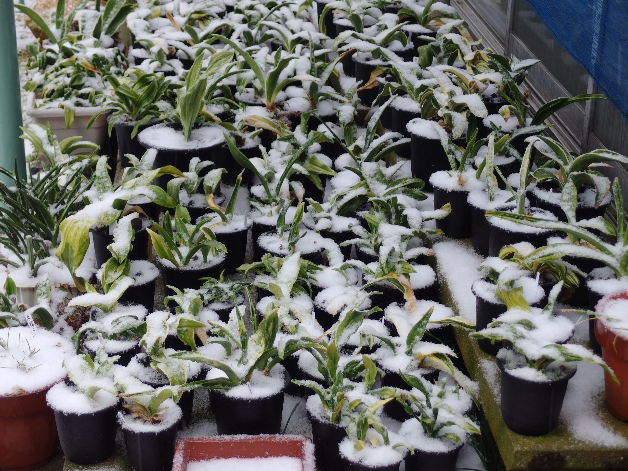 私たち万年青の豊明園では、数度は凍るように育てています。完全に凍るのではなく、一部凍る、一晩凍る、という程度です。