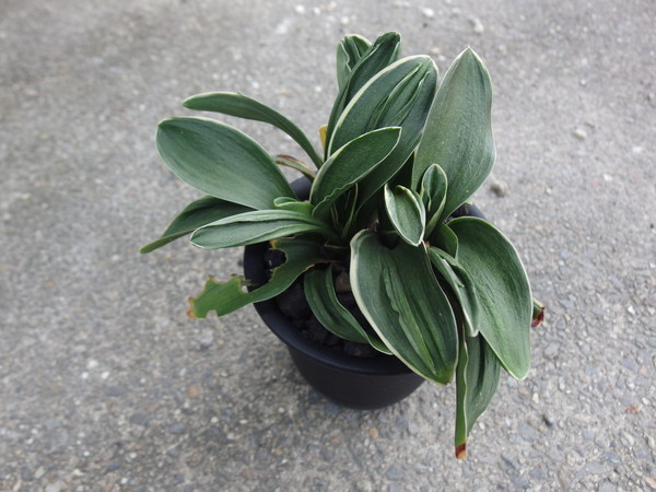 オモトの植え替え 下葉は虫に食われた跡があり、葉が少し当たったように見受けられます。今年の葉は昨年度より元気にしています。