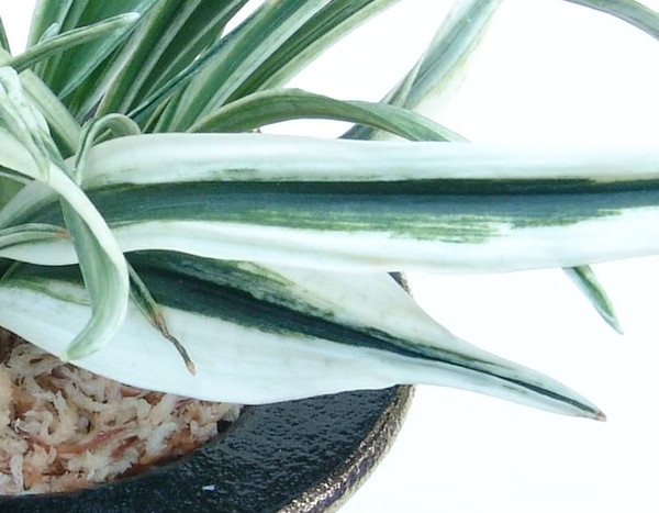 姿美しく、鶴がまさに翼を開いたような姿、砂子柄きれいな美麗品小型、丈夫な品種 希少種美しい砂子覆輪。葉芸も示し、なかなかに育てる変化も楽しませてくれる。白鶴は少し古い品種なので、広く日本全国で育て守っていきたい品種。