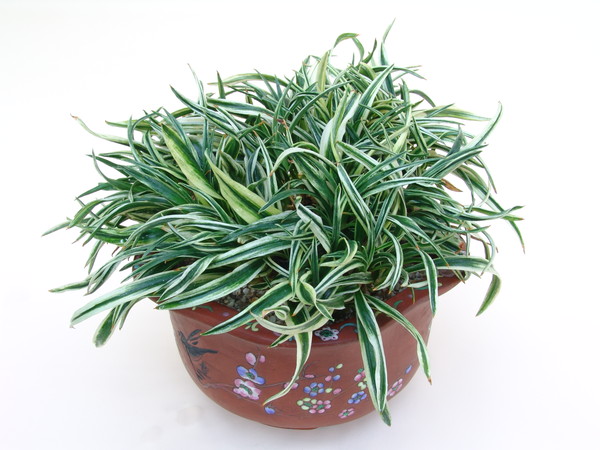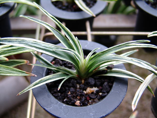 砂子群雀系。姿勢良く、濃緑色の葉に、綺麗な砂子斑(白い柄)が鮮明に現れ美しい。性質は、丈夫で、採光は充分に。繁殖は非常に良い。