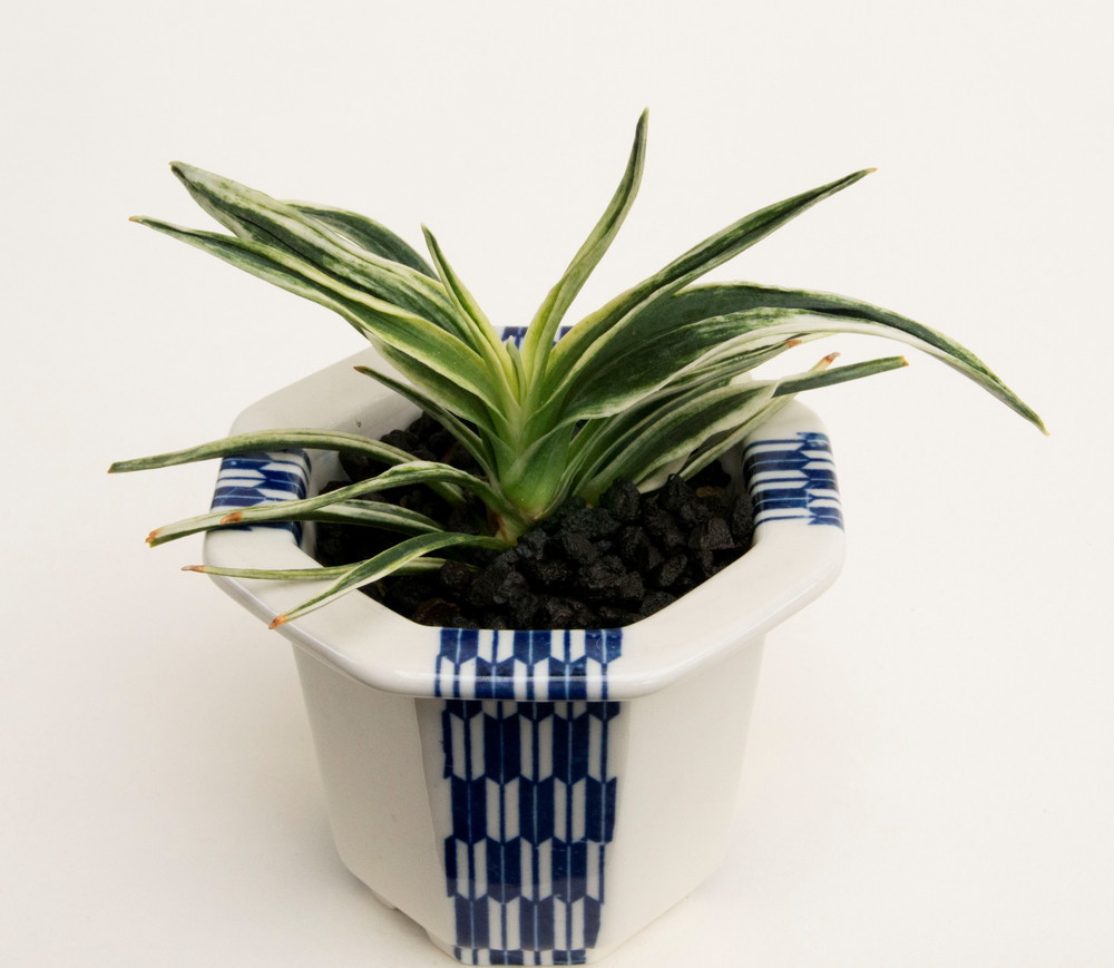 和楽の特上鉢に植え込み完成。羽根を広げ幸福を運ぶような葉姿が人気。