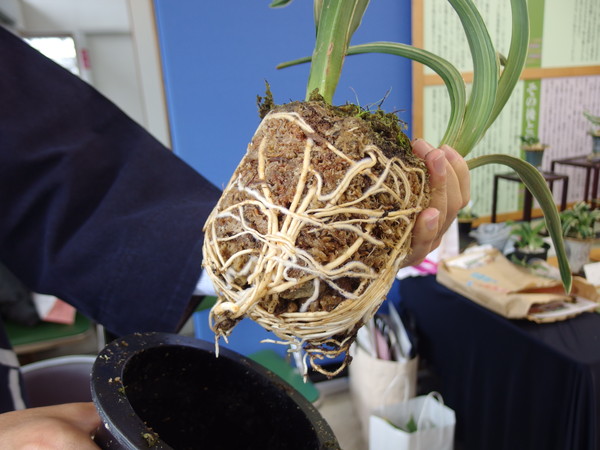 品種鑑定に見えたお客様の木 根っ子。自分で採取した水苔に植えて管理してみえます。