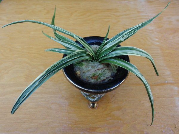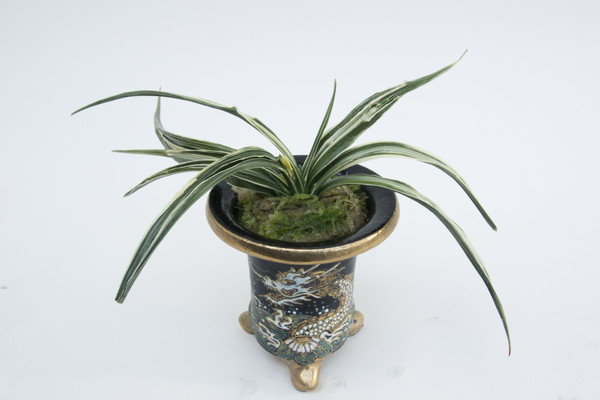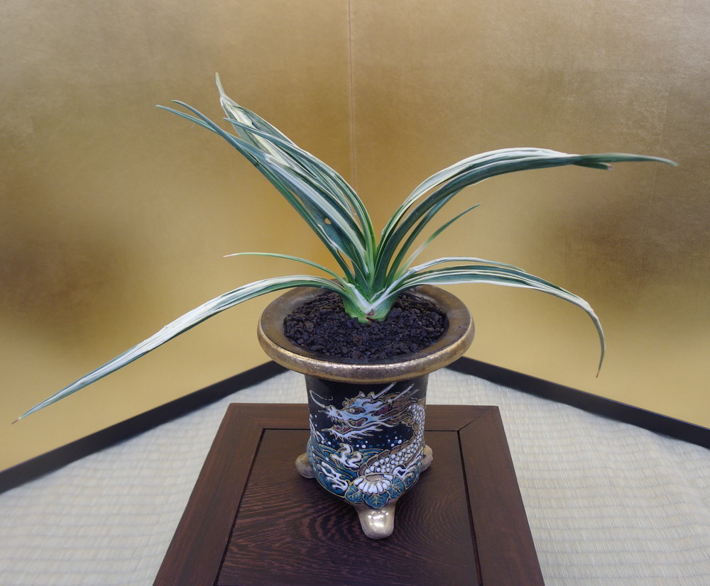 中型種。葉長12~15㎝、葉幅3㎝内外、濃緑色の葉に白覆輪を見せる。本葉は基部ひろく、しだいに細くなり先端は剣葉の様に尖る。雅糸竜はやや盛り上がり葉全体にかかる、ときに玉雅糸竜が現れる。葉繰りは5~6枚、現在万年青界では見られなくなってきました。