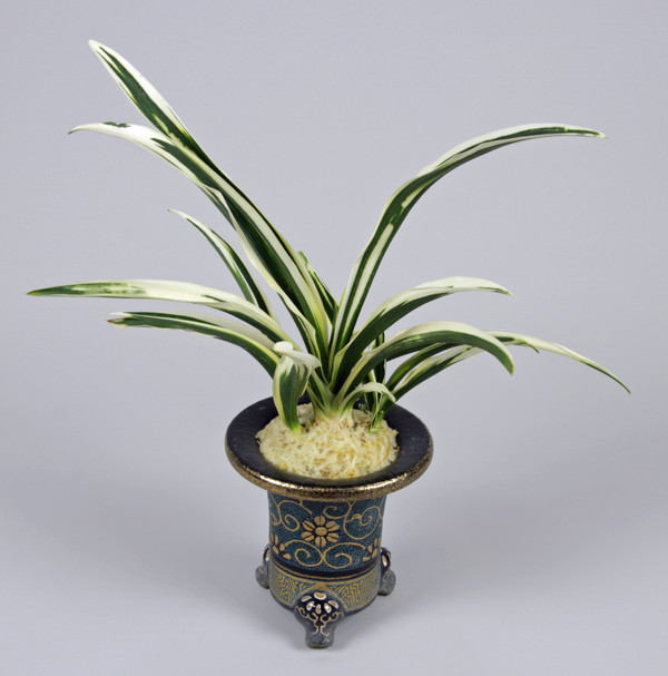 「阿波日月」に白色の虎斑が現れたもの。発見者が同県村上市内の旧家で発見、命名者が栽培して全国大会に3本たちを出品したところ、その美しさに人々は魅せられたという。葉長20㎝、葉幅3㎝内外。濃紺緑色の葉に白く深い覆輪が華やかさをみせるところに雪白の虎を現し、この上ない美しさを見せてくれる。葉の裏側に葉脈が筋立ち突起する物を見せる。性質は強健で子上げも普通。施肥は普通。