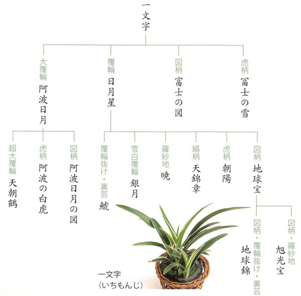 一文字から根変わりした品種に富士の雪・富士の図・日月星など