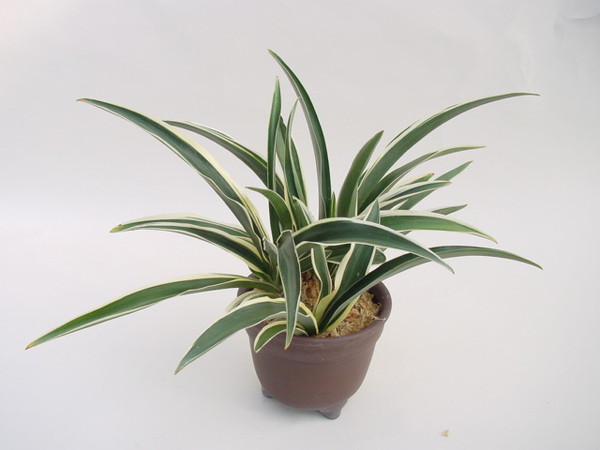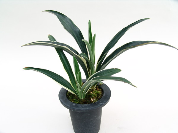 葉の長さ20㎝~25㎝中型種で濃緑色の葉に白覆輪を見せる。