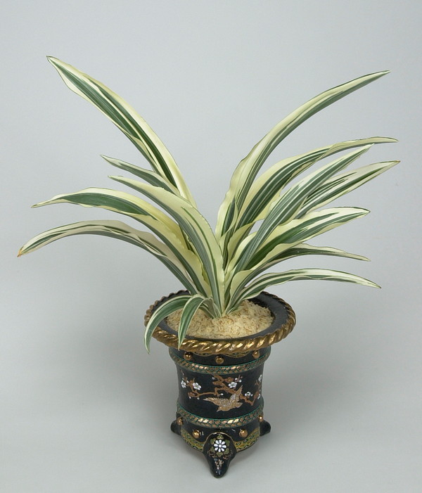 白さと糊を引いた葉に気品があり、葉姿は立ち葉で雄大。葉幅も広く、大葉趣味者なら誰もが作ってみたい大葉 の王者。「大象観」の芽変わりで、切り葉の生 産地で極稀に変化する。性質は普通。葉が白いからといつて、日焼けを怖がり陽を採らないと弱つてしまぅので、強光線は控え、できるだけ陽を採る。肥料は多め。親になれば 繁殖は良い。