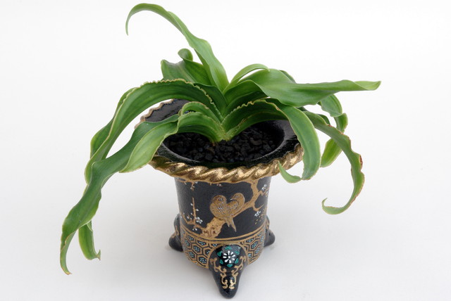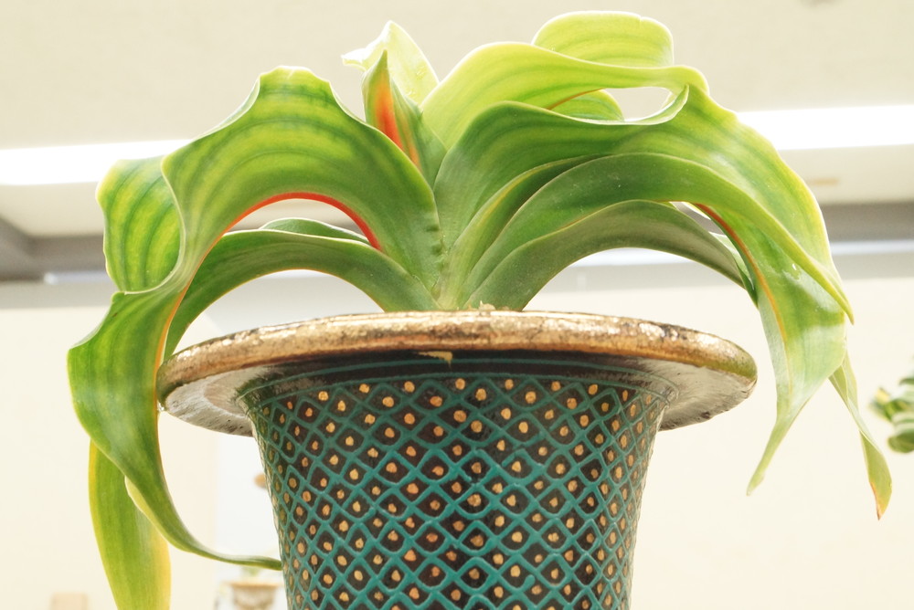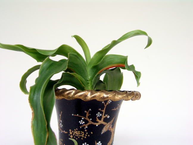 この紅流しや、一番最初の萬年青圖譜にものっている墨流し、他にも還城楽、江戸紺、東鏡、逆鉾、など、古典品種で、今では数の少ない物も、珍品として棚入れの希望者が増え、値もあがってきています。