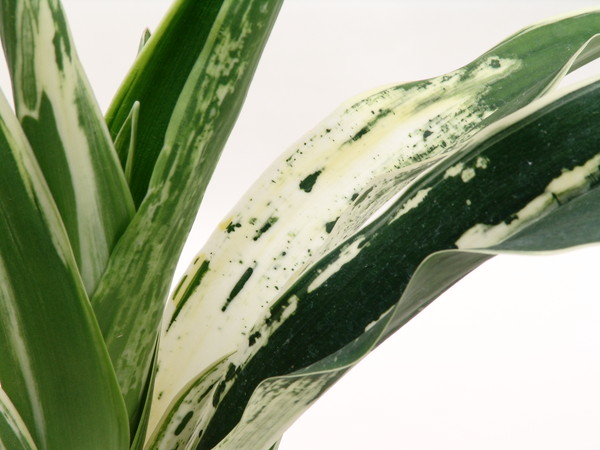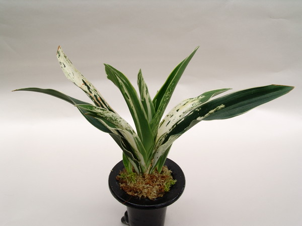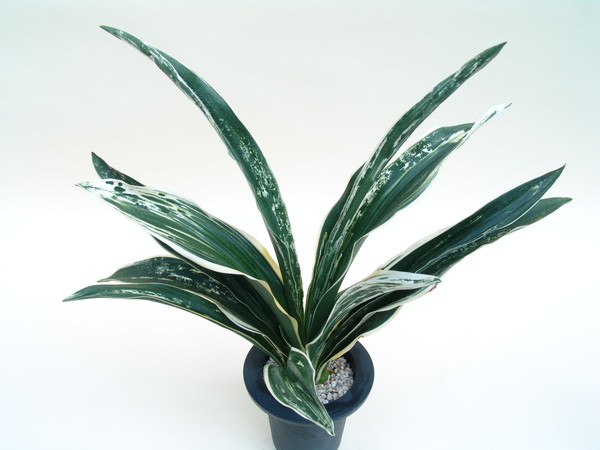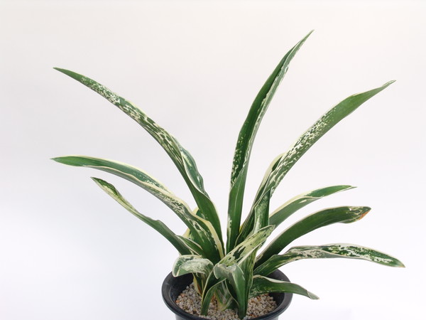 『五大高嶺』に図が現れたもの。葉長45cm、葉幅6㎝内外で葉先にかけて少しふくらみがある。紺性の強い照りのある地合いで葉肉厚く、白い深覆輪を現す。図は流れるように大きく入るものから星状や大小さまざまな形となって葉全面に現れる。図性に良否があり、図性の良い物は人気も高い。性質は強健で子上げも良く、作り易いとても美しい木。