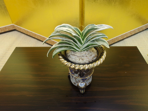 太陽らしい迫力ある金色の総雅糸竜。独特な葉姿を見せます。キズ一つなく、素晴らしい出来です。なんといっても迫力があって、人の目をひきつけます。