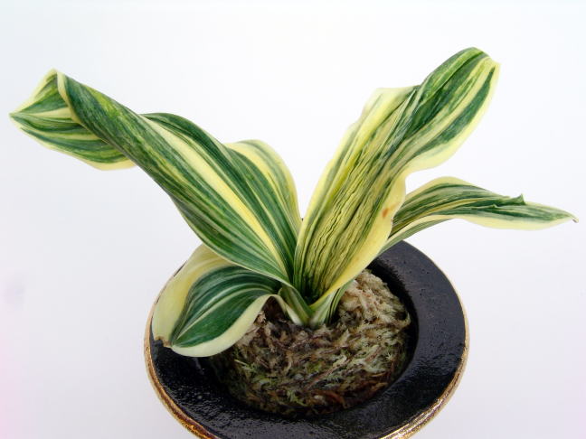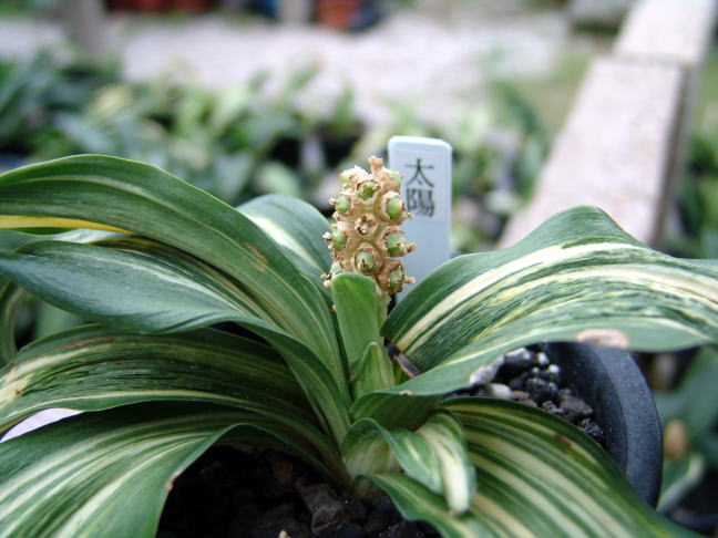 ある時、縞柄だけだった「太陽」に大覆輪が現れ、姿の美しいものが根変わりで生まれました。それが現在登録されている「太陽」の大本です。「太陽」が実生として生えたのが昭和48年、登録されたのが平成13年なので、実に30年弱の年月がかかっています。