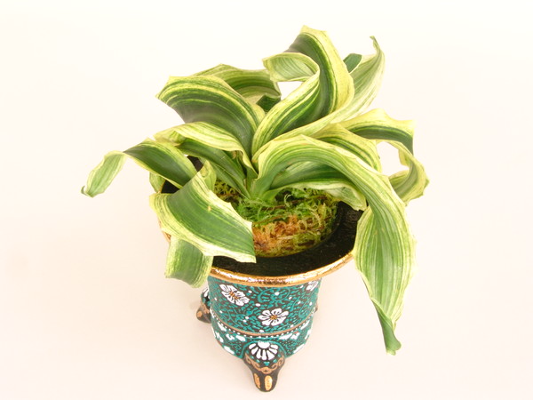 濃緑色の葉に砂子斑を現し葉は柔らかくカールします。