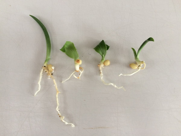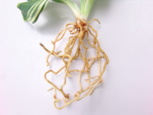 獅子芸 根っこ1年生 根が巻き始めました。葉はカールして、葉の縁はビリ芸を見せています。