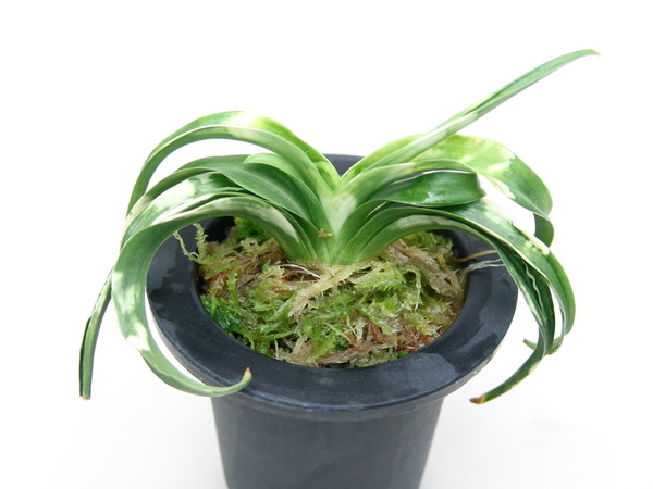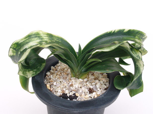 濃緑色の葉に白い柄を見せます。葉の裏から見ると矢羽の模様が良く分かります。性質は強健で作りやすい品種です。