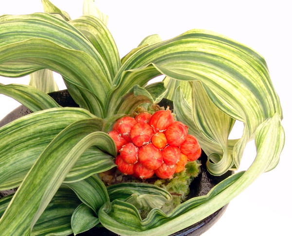 白い斑が美しく、実も白斑柄を見せます。9月の実、葉と同じ柄を見せています。