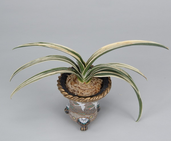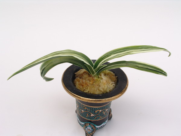 地変わり縞甲竜型。中型種。2才までは葉先が尖って甲竜が現れる程度のものだが、3才くらいから緻密な雅糸竜をのせ太い覆輪をかける。性質は丈夫だが繁殖があまり良いほうではない。
