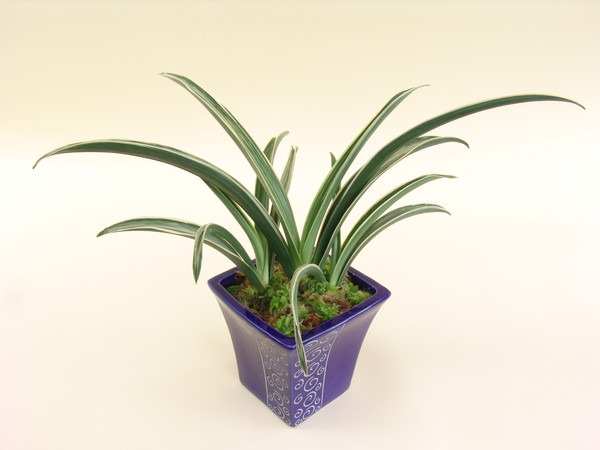 四海波(しかいなみ) 4年生 鉢 4号 濃緑色の細長い葉に雅糸竜を見せる。葉先から1cmくらいあたり少し葉が細くなる、丈夫で作り易い品種。
