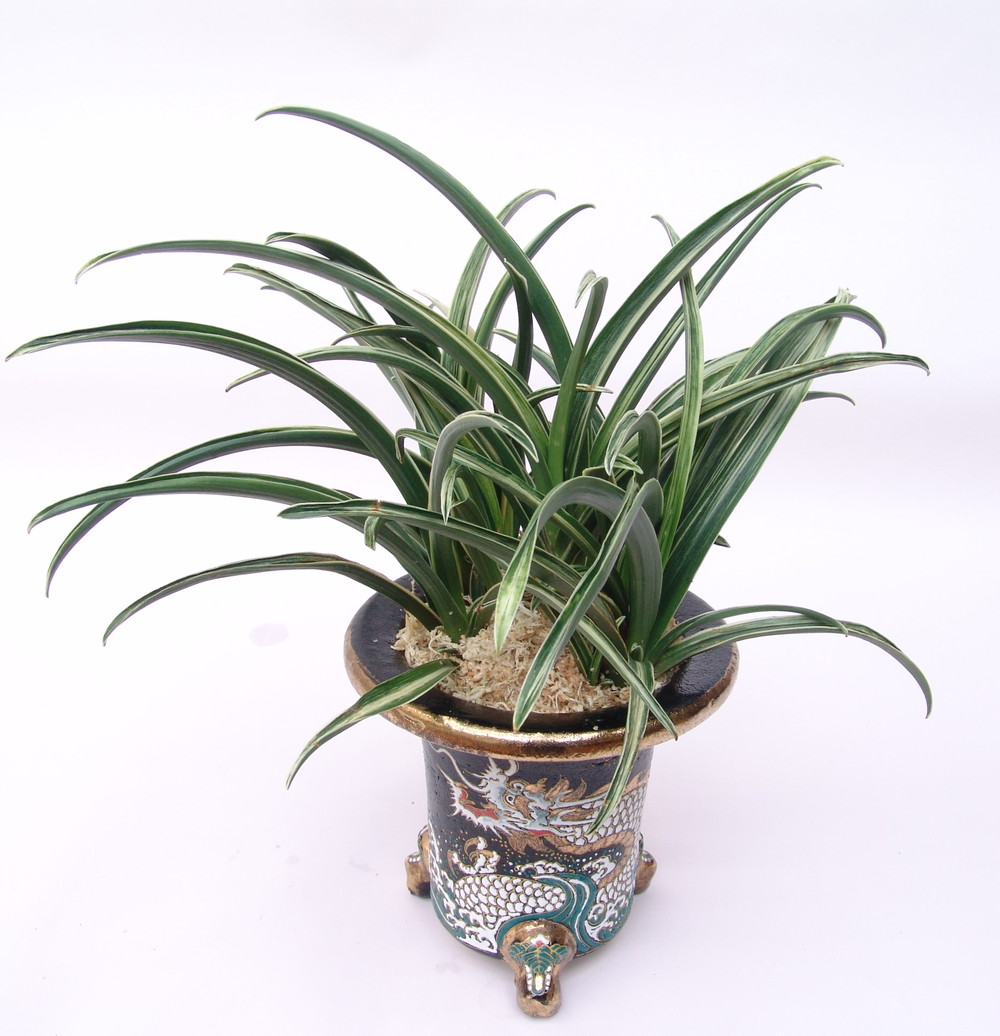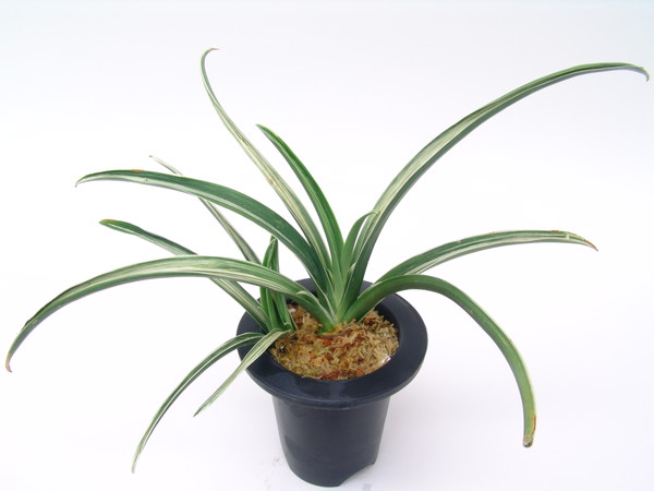 地変縞甲竜型。葉長12㎝、葉幅3㎝内外の中型種。葉は濃緑色で、葉幅細く、樋葉となり、葉先は鋭く尖っている。背の低い甲竜、緻密な雅糸竜が現れ、襟組も良く、上品で美しい。性質は大変丈夫で作りやすい品種。