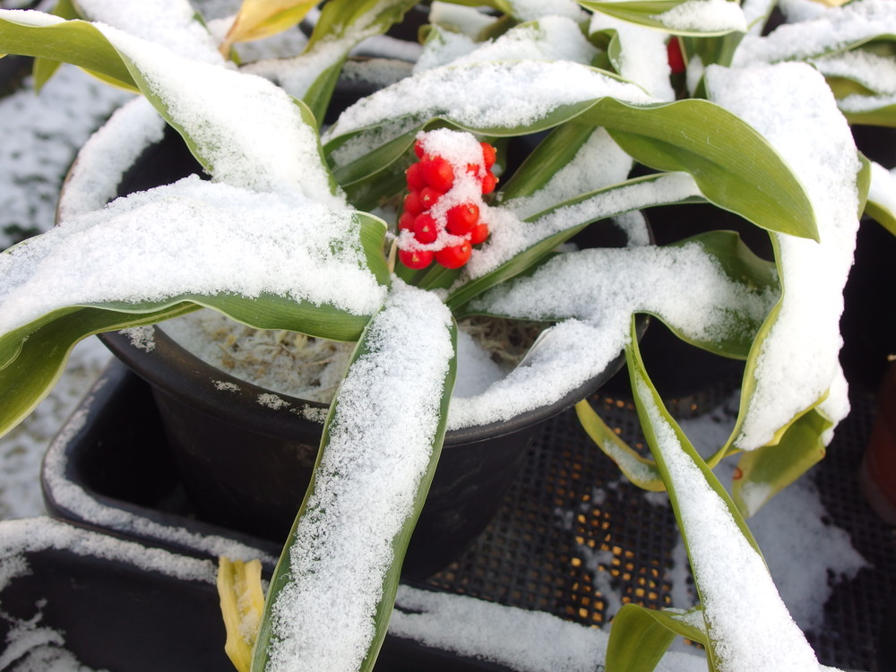雪が降りつもる時そのままの場所に置き管理します。急に暖かい場所に移さない事。自然の寒さに馴らして管理しているおもとは丈夫です。