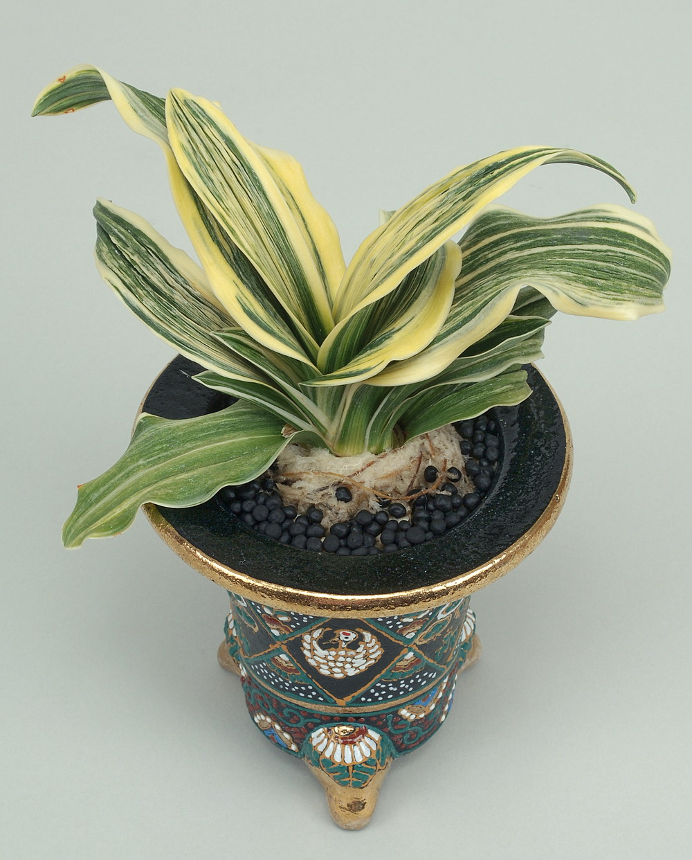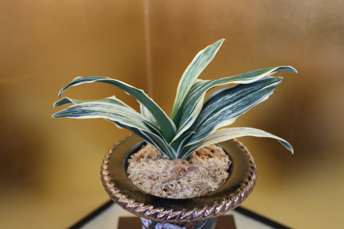 太陽型の縞甲。こちらのほうが、雅糸竜が繊細で、白い。最近の太陽人気で、波涛も見直されてきました。太陽型のおもとは、ぱっとみて分かりやすく、迫力があるので初心者さんから玄人まで幅広い人気があります。