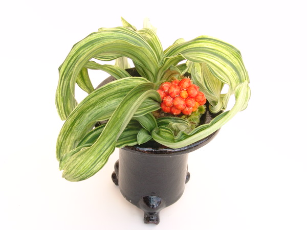 白い斑が美しく、実も朱色に染まり斑柄も見せます。1月27日の実