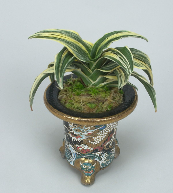 濃緑色の厚い葉に雅糸竜、甲竜、二面竜、鎌葉を現す。腰太の豪快な葉姿になります。繁殖は子吹き良い、性質は強健で作りやすい品種です。