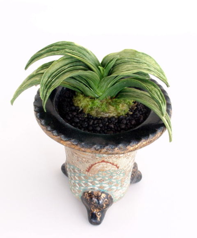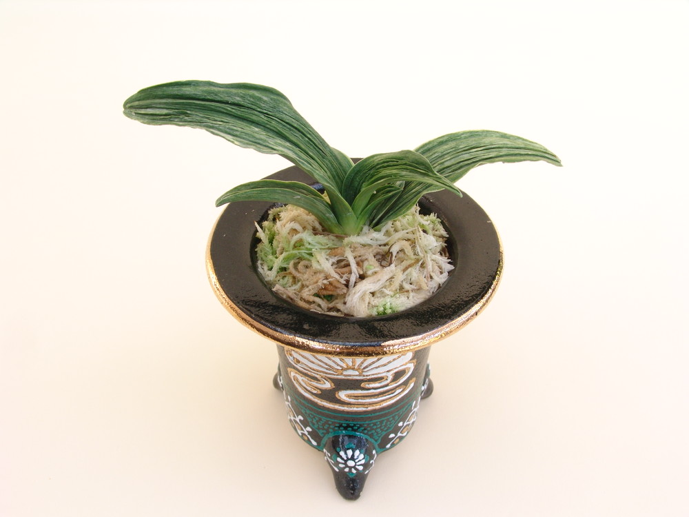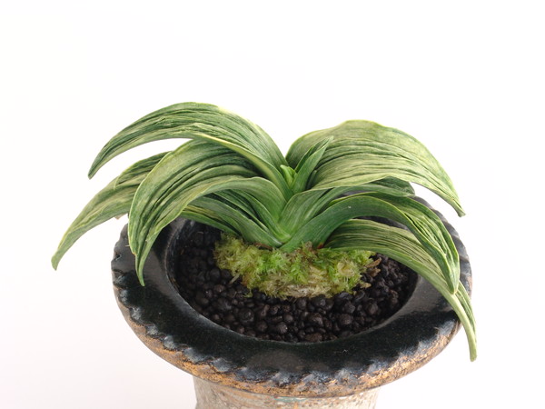 江戸時代の万年青趣味に通じるものがあるのか、万年青の緑、葉の厚み、貫禄を楽しむ。ゴマ斑をもち、黄金の胡麻を葉に散らし、独特の地合いがあります。胡麻羅紗の王者と言われるゆえんも、その地合いの素晴らしさから。ドキッとするような地肌は美しく、いつまでも眺めていたい。加えて、その地合いを引き締めるかのような雅糸龍は力強く、深い渓谷を思わせます。胡麻羅紗のレベルを上げ、裾野を広げた立役者。作出され50年近くたった今でも、人気もあり希少ですが、色あせない魅力を楽しんでみてください。