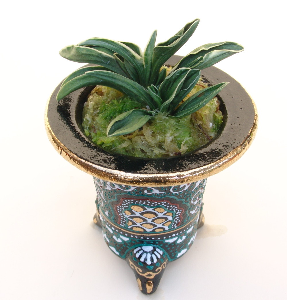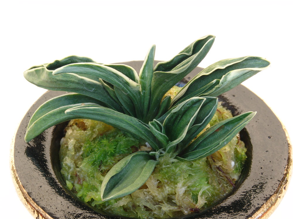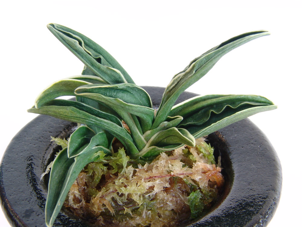 轟(とどろき) 4年生 鉢 3.5号 葉長5㎝葉幅2㎝内外の小型種。首が太く、葉先が丸止めのずんぐりとした容姿は、実に愛嬌がある。二面系の特徴である熨斗葉、甲竜、びりなどの葉芸は葉繰りの良さと調和して実に個性的。二面系のなかでも異彩を放ち独特の存在感がある。性質は丈夫て゛繁殖も良い。採光は強めが良く、葉尺をつめることにより個性的な姿になる。施肥は小型なだけにやや少なめが良い。作出後かなりたっているが全国的に数が少なく、作り甲斐のある品種。