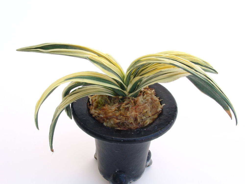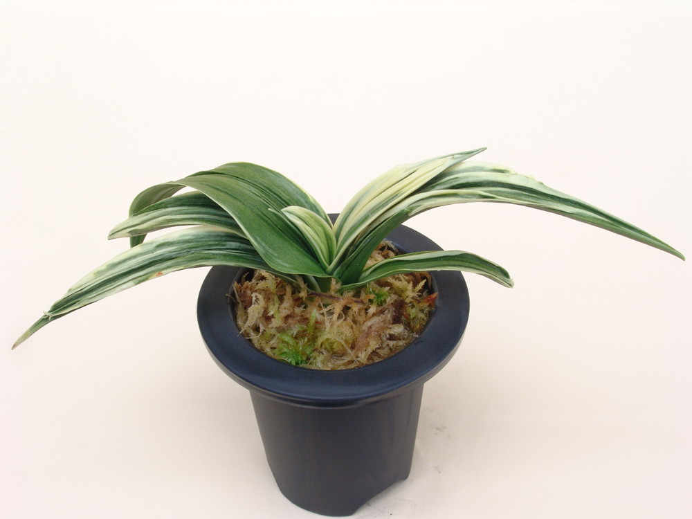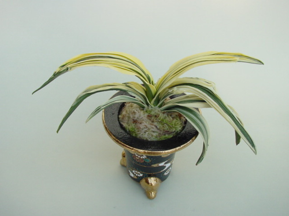 国光殿(こっこうでん)3.5号鉢 3年生 中型種で葉先鋭く黄色みを帯びた深覆輪に総雅糸竜、剣葉、鈴虫剣をあらわす。性質は強健、繁殖は良い