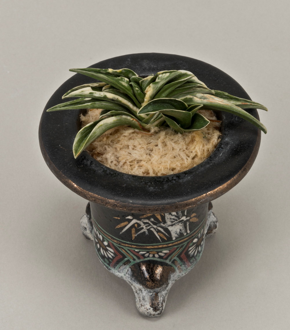 葉長5㎝、葉幅2㎝内外の小型種。葉先が丸止めでふくよかな葉姿、そのバランスから全体にずんぐりとした感じを与える。熨斗葉、甲竜が葉芸の主体で、雅糸竜は少ない。「板地」といわれる堅い地合いを持ち、葉の紺性が強く覆輪は白い。折下げは程々で、葉繰りが良く葉姿を乱さないので安心して楽しめる。性質は丈夫で、若いうちは良く子を上げるが、親木が古くなったら芋吹きで殖やすと良い。