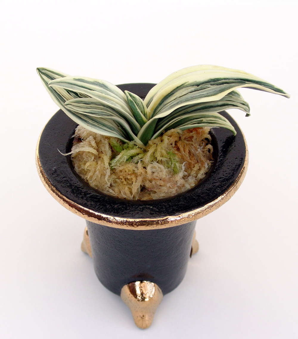 宝山(ほうざん) 2年生 鉢3.3号 濃緑色の葉にはっきり覆輪が回り、芸を現す。