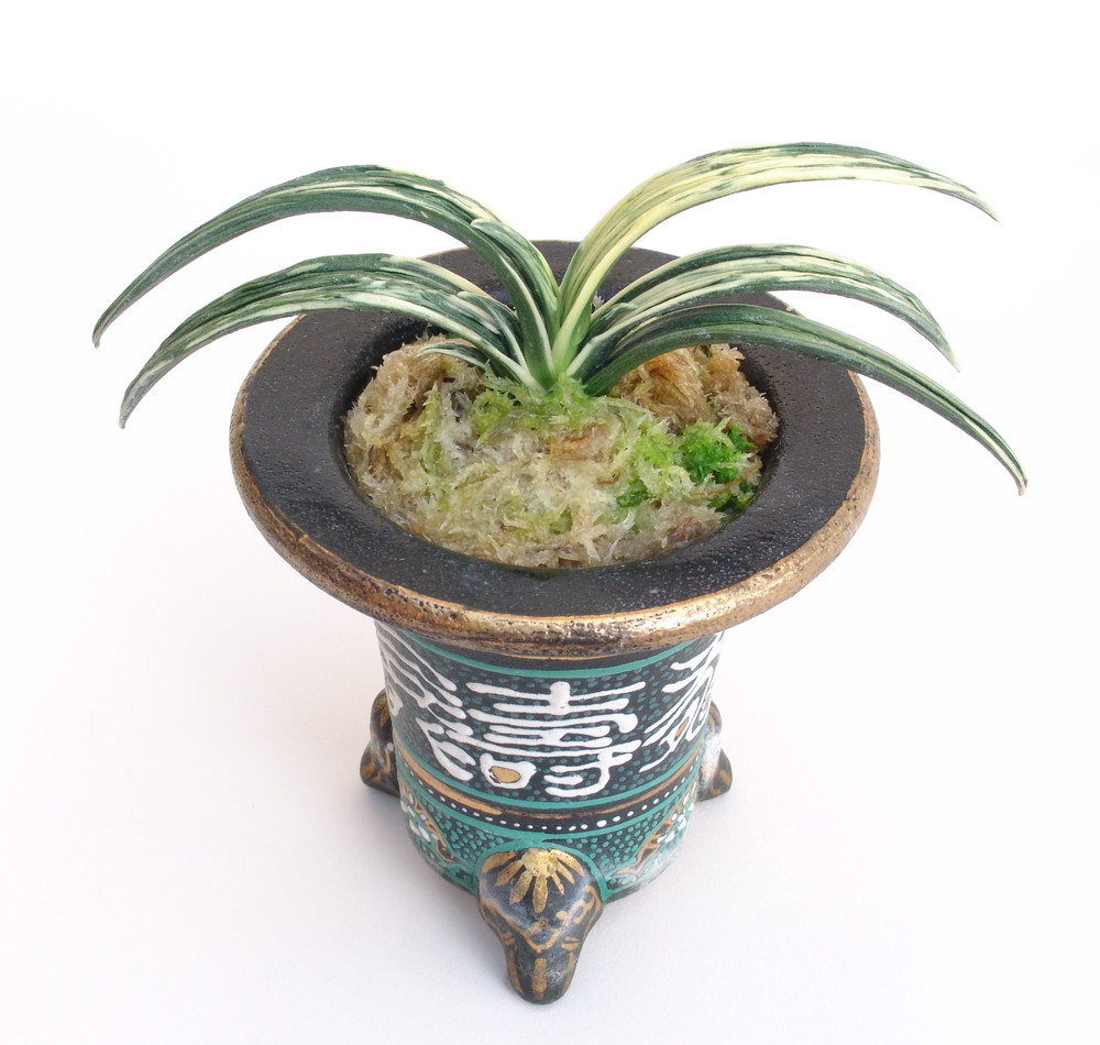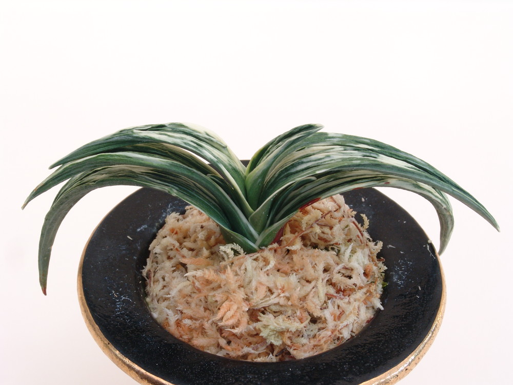 濃紺緑色の肉厚の細葉に総雅糸竜を現します。性質は中で作り易い品種。