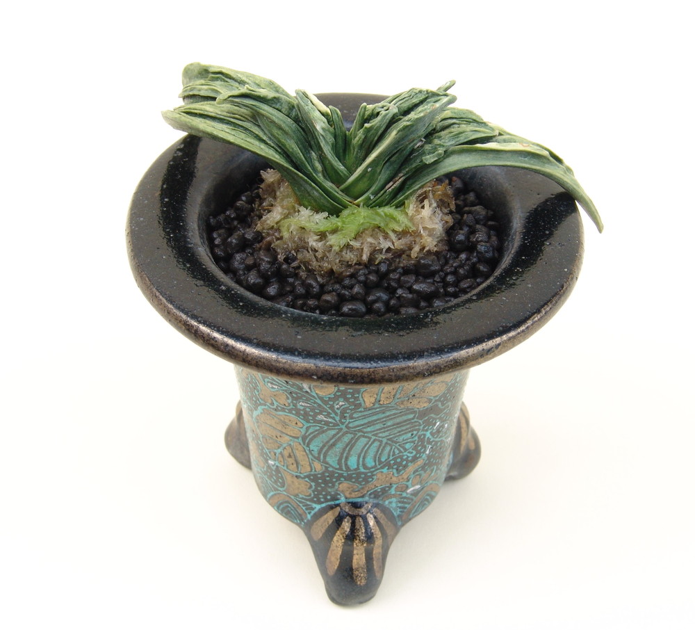 壽冠 (じゅかん) 4年生 鉢3.5号 艶消し地の重厚な地肌に雅糸竜・熨斗葉・剣葉を見せる。実親は「カキガラ錦福」より作出されました。当才の時より加藤実生として注目を集めていました。