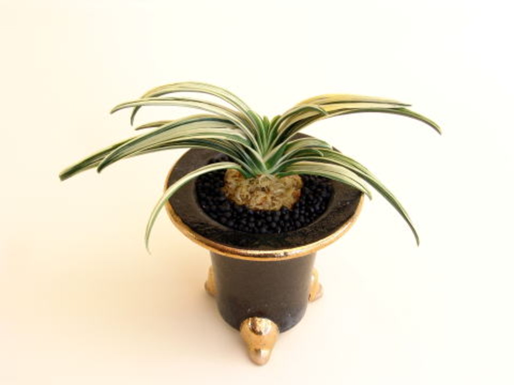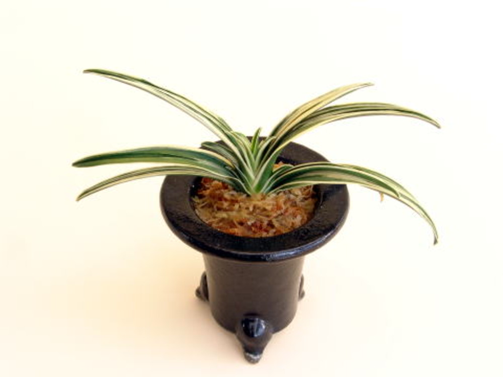 芸州(げいしゅう) 6年生 4号鉢濃緑色の鋭い葉に総雅糸竜を現す、葉繰り良い品種。丈夫で育てやすい品種。採光はやや強めにして管理