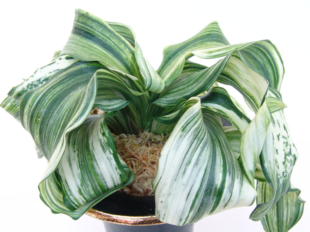 投稿日: 2018年12月27日2020年1月27日 投稿者: 豊明園白鳳獅子 (はくほうじし) 分類 獅子系統 作出年代 不明 登録 平成7年 作出者 不詳 命名者 酒井英明 (茨城県) 登録者 神谷辰之助 (福井県) 白鳳獅子(はくほうじし) 4年生 鉢 4.0号 白斑の葉は幅広くゆったりと大きく葉巻きします。白虎が大柄に現れます。性質は強く子上しやすい品種。 白鳳獅子(はくほうじし) 2年生